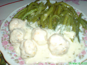 Sos alb: Se topeste untl si se adaua faina amestecant incontinuu sa nu se faca cocoloase se toarna cate un pic pana se leaga bine din supa unde au fiert chiftelutele~300 ml si se lasa sa dea in clocot dupa care se adauga smantana si chiftelutele se lasa sa dea cateva clocote dupa care se ia de pe foc.